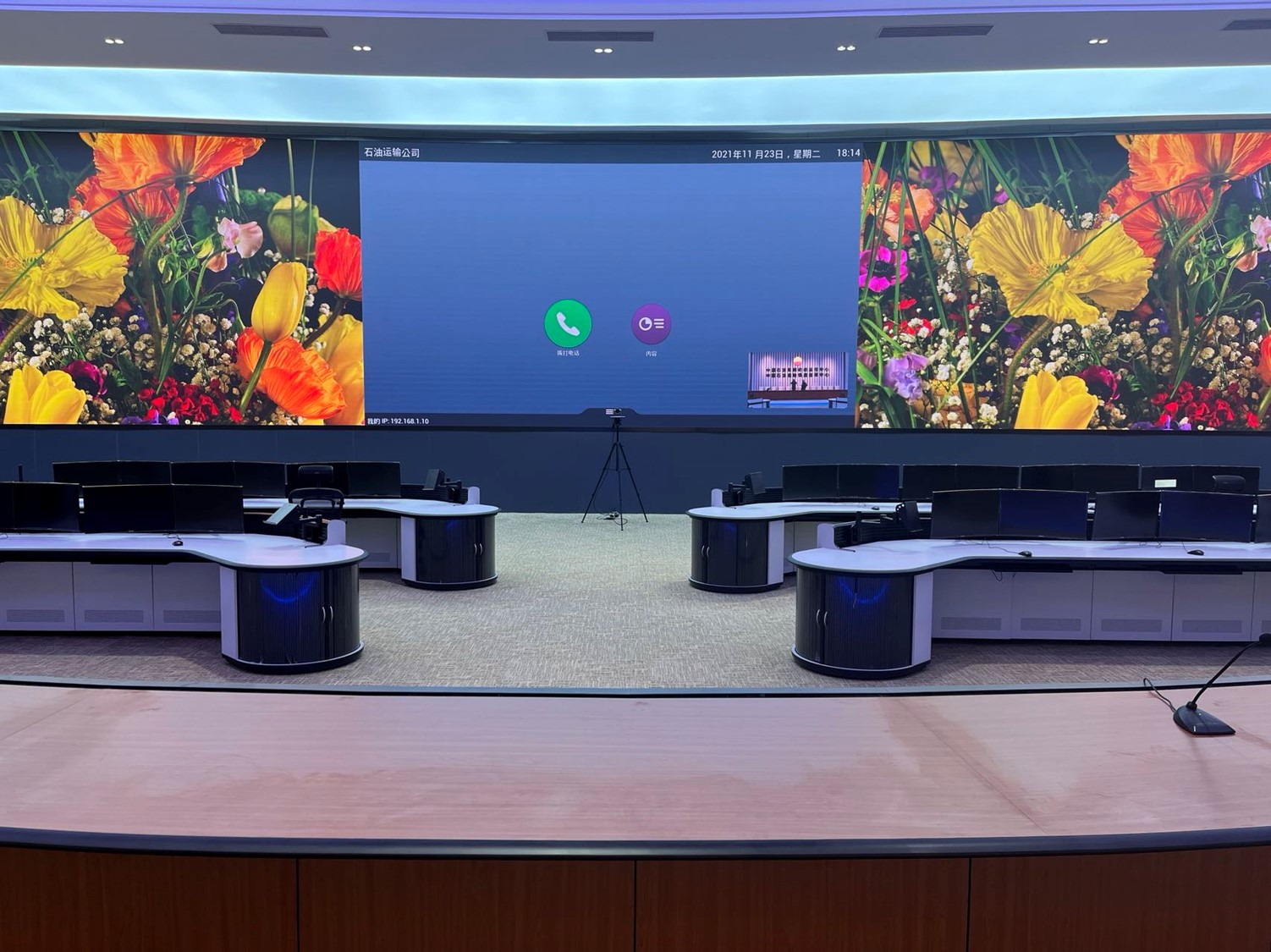 中國石油運(yùn)輸公司調(diào)度中心項(xiàng)目位于北京順義和新疆烏魯木齊兩地,兩地調(diào)度中心各建1套1.56mm的LED監(jiān)控大屏,并重點(diǎn)對(duì)兩地視頻會(huì)議功能進(jìn)行升級(jí),由原來模擬視頻會(huì)議終端升級(jí)為高清終端,實(shí)現(xiàn)雙路高清攝像機(jī)信號(hào)的實(shí)時(shí)切換及雙流顯示。保證兩地調(diào)度中心會(huì)場(chǎng)互聯(lián)互通,實(shí)現(xiàn)視頻交流,通過集團(tuán)M